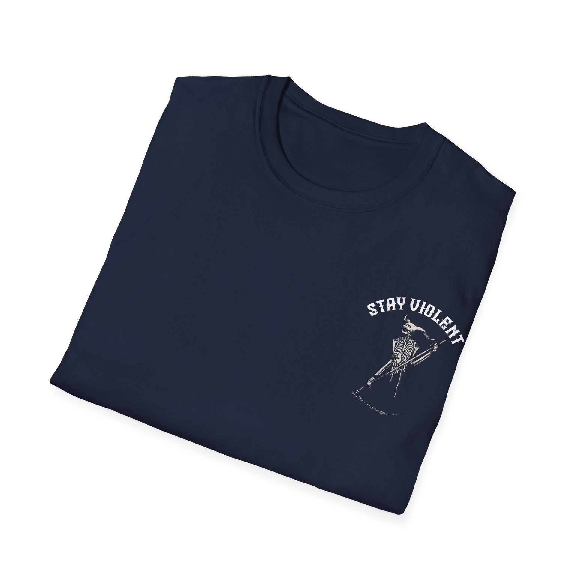Unisex Softstyle T-Shirt - Stay Violent Graphic Tee, Casual Streetwear, Gift for Rebels, Halloween Vibe, Everyday Comfort